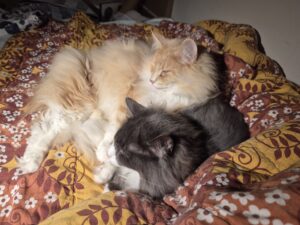 Kattpojkarna håller sig mycket i sängen. Både när jag ligger där och när det bara är de två.