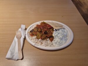 Gick och köpte lunch, en vegetarisk gryta. Tyvärr var den inte speciellt god, men den dög att äta.