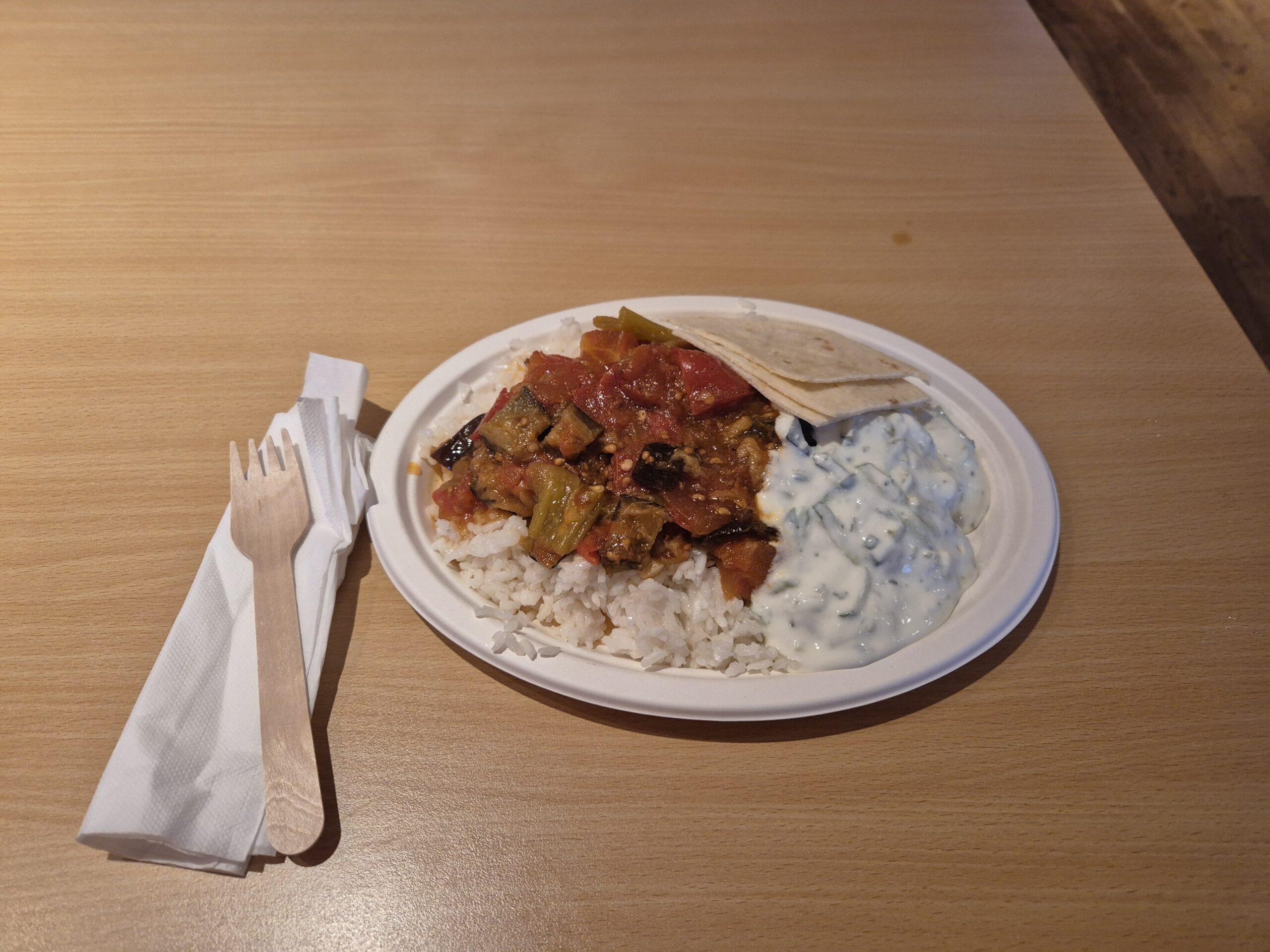 Gick och köpte lunch, en vegetarisk gryta. Tyvärr var den inte speciellt god, men den dög att äta.